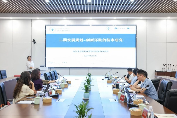 簽約儀式結(jié)束后,圣諾多肽團(tuán)隊(duì)參觀了浙江大學(xué)衢州研究院的展廳、分測測試中心、生物醫(yī)藥研究所相關(guān)創(chuàng)新實(shí)驗(yàn)室、中試基地等。后續(xù)浙江大學(xué)衢州研究院生物醫(yī)藥研究所相關(guān)科研團(tuán)隊(duì)詳細(xì)匯報(bào)了此次合作研發(fā)的項(xiàng)目目標(biāo)、技術(shù)方案和試驗(yàn)進(jìn)展等,并就存在的問題和下一步工作計(jì)劃進(jìn)行了深入交流探討。