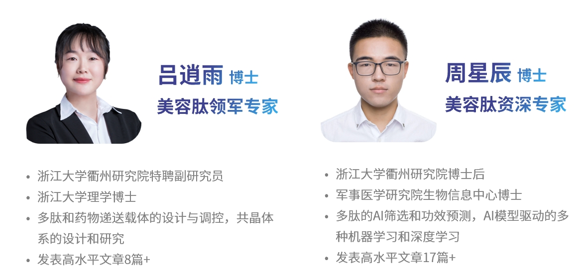 浙江大學(xué)衢州研究院&圣諾生物組建的美容肽創(chuàng)新聯(lián)合研發(fā)中心擁有6000平實(shí)驗(yàn)室,是一所集天然藥物制備、化學(xué)生物藥綠色合成、創(chuàng)新藥物研發(fā)藥物制劑、醫(yī)藥添加劑創(chuàng)制五位一體的前沿性研發(fā)平臺(tái)。目前全職研發(fā)人員超40名,由7名學(xué)術(shù)背景優(yōu)異的博士專家領(lǐng)軍,全面覆蓋創(chuàng)新肽AI篩選和設(shè)計(jì)、環(huán)肽合成等五大研究領(lǐng)域。