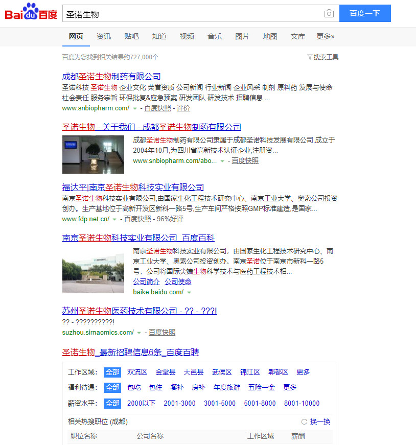 首先打開(kāi)搜索界面,輸入關(guān)鍵詞:圣諾生物