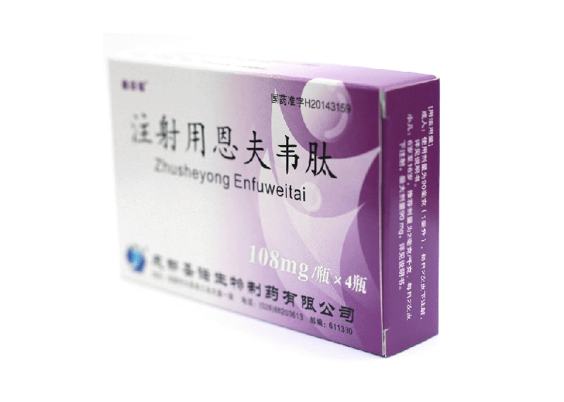 注射用恩夫韋肽使用前需要以無(wú)菌注射用水溶解,然后皮下注射給藥。如果溶解后不能立即使用,必須保存于2--8℃冰箱中,并在24小時(shí)內(nèi)使用。冷藏的溶液注射前必須加熱至室溫(例如握在手中5分鐘),并且注射前應(yīng)檢查確保溶液完全溶解,沒(méi)有顆粒物。